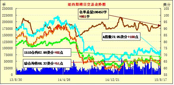 本周紐約期棉延續(xù)漲勢(shì),主力合約突破66美分;1512月合約結(jié)算價(jià)66.52美分/磅,漲57點(diǎn);1603月合約收于65.75美分/磅,漲29點(diǎn)周一主力合約繼續(xù)平穩(wěn)上漲,下行空間有限,最高價(jià)接近67美分,為66.89美分/磅,收盤時(shí)小幅回落,收于66.52美分/磅,漲幅0.14%。