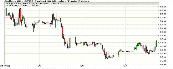 周四期棉小幅反彈,主力合約重新站上63美分;1512月合約結(jié)算價(jià)63.35美分/磅,漲84點(diǎn);1603月合約收于63.13美分/磅,漲88點(diǎn)。當(dāng)日主力合約大部分時(shí)間處于上漲趨勢(shì),下半場(chǎng)交易時(shí)受賣盤(pán)影響回落,但很快重回高位。周四滬指重上3000點(diǎn),市場(chǎng)情緒緩和帶動(dòng)大宗商品上漲,截至8月20日2015/16美棉簽約達(dá)到預(yù)測(cè)簽約總量的28%,新年度美棉減產(chǎn),預(yù)計(jì)全球市場(chǎng)供應(yīng)將出現(xiàn)缺口。