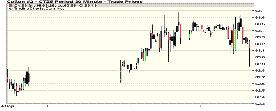 9月9日,紐約期棉窄幅調(diào)整,主力合約小幅收跌; 12月合約結(jié)算價(jià)62.92美分/磅,跌36點(diǎn),1603月合約62.68美分,跌26點(diǎn)。當(dāng)日主力合約全天走勢(shì)以上漲為主,但收盤前賣盤壓力回歸市場(chǎng),合約價(jià)小幅收低。 進(jìn)入九月以來(lái),北半球產(chǎn)區(qū)新花陸續(xù)上市,現(xiàn)貨市場(chǎng)開(kāi)始主導(dǎo)棉價(jià),中美印減產(chǎn)或繼續(xù)形成支撐。