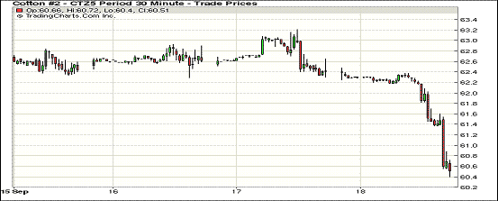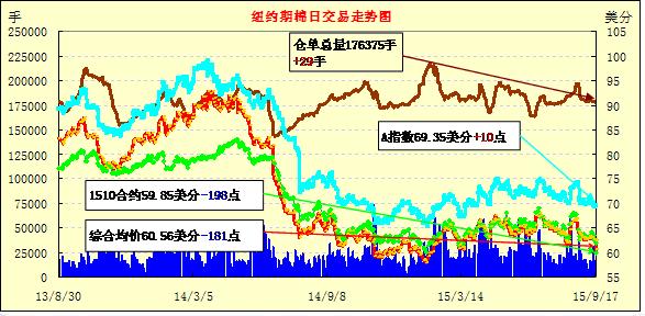 美聯(lián)儲(chǔ)暫緩加息激起對(duì)全球經(jīng)濟(jì)增長(zhǎng)的擔(dān)憂,9月18日美棉、美股等大幅收跌;1512月合約結(jié)算價(jià)60.55美分/磅,跌185點(diǎn),1603月合約60.52美分,跌170點(diǎn)。當(dāng)日早間,紐約期棉隨美股一路下跌,收于60.55美分/磅,僅較當(dāng)日最低價(jià)15點(diǎn),創(chuàng)3月中旬以來最低價(jià)。由于以中國(guó)為首的全球經(jīng)濟(jì)增長(zhǎng)值得擔(dān)憂,美聯(lián)儲(chǔ)周四宣布維持利率不變,未來中國(guó)消費(fèi)堪憂。目前美棉簽約已達(dá)USDA預(yù)測(cè)的30%左右,但作為最大消費(fèi)國(guó)的中國(guó)簽約量占比已大幅減少。