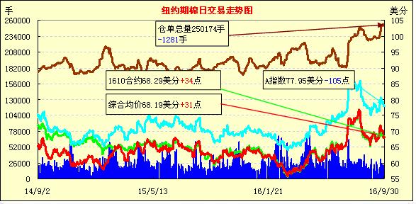 30日,紐約期棉市場(chǎng)小幅上漲,主力12月合約結(jié)算價(jià)68.39美分/磅,漲35點(diǎn),1703月合約68.54美分,漲19點(diǎn)。當(dāng)日12月合約早盤(pán)圍繞68美分波動(dòng),盤(pán)中大幅下跌,回落至67美分一線,交易后期拉回68美分以上。分析師指出,美國(guó)棉區(qū)天氣正常,拉尼娜暫未形成不利影響,市場(chǎng)缺乏炒作題材相對(duì)平穩(wěn),但中國(guó)和美國(guó)新花上市越來(lái)越集中,美棉產(chǎn)量高,市場(chǎng)上行有壓力。