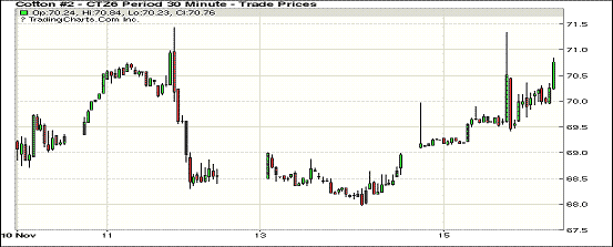 ICAC最新預(yù)測(cè)調(diào)增全球進(jìn)口貿(mào)易量,紐約期棉連續(xù)第二個(gè)交易日上漲;1612合約收于70.69美分/磅,漲179點(diǎn);1703合約收于70.48美分/磅,漲117點(diǎn)。當(dāng)日3月合約在收盤前沖高并最終收于震蕩區(qū)間高位,連續(xù)兩個(gè)交易日收漲,累計(jì)漲145點(diǎn)。最新ICAC預(yù)測(cè)上調(diào)全球進(jìn)口貿(mào)易量至748萬(wàn)噸,較上年度增4%,10月越南棉花進(jìn)口量增加,同月中國(guó)進(jìn)口量減少。