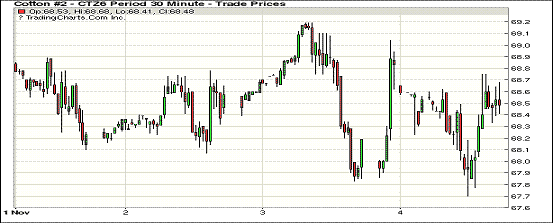 4日,紐約期棉市場小幅反彈,近期12月合約結(jié)算價68.53美分/磅,漲46點(diǎn),1703月合約69.1美分,漲42點(diǎn)。當(dāng)日12月合約上半場交易在68.2-68.7美分間窄幅波動,交易中期下滑68美分失守跌落至10月21日來低位,后獲點(diǎn)價盤支持反彈至68.5美分一線,終以小漲收盤。分析指出,68美分處獲明顯點(diǎn)價盤支持,據(jù)CFTC統(tǒng)計,4日當(dāng)周12月合約上紡織廠點(diǎn)價968手,棉農(nóng)點(diǎn)價601手。