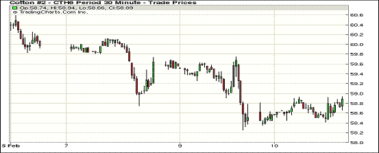 在經(jīng)歷前一日大跌后,2月10日紐約期棉市場處于休整狀態(tài),1603月合約結算價58.88美分/磅,漲24點;1605月合約收于59.23美分/磅,跌1點。市場當日成交以3月合約轉倉為主,成交維持高位,但波動幅度較小,市場繼續(xù)消化前一日USDA(美國農業(yè)部)報告的多空因素。雖然全球棉花產(chǎn)量減少,庫存仍處于歷史高位,基本面壓力較大,ICE期棉在大跌之后小幅波動,3月合約以微幅上漲收盤。