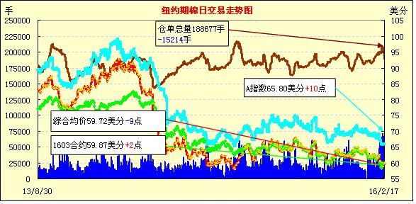 周三外圍市場普遍收漲,但紐約期棉回落;1605月合約59.55美分/磅,跌19點(diǎn);1607月合約59.80美分/磅,跌19點(diǎn)。當(dāng)日,1605月合約窄幅震蕩,波動區(qū)間僅64點(diǎn),接近盤尾時賣盤回歸合約價下跌。目前美棉銷售進(jìn)度整體偏慢,且接近儲備棉銷售之際,投資者對國儲棉價格關(guān)注,并對拋儲感到擔(dān)憂,市場情緒焦慮。