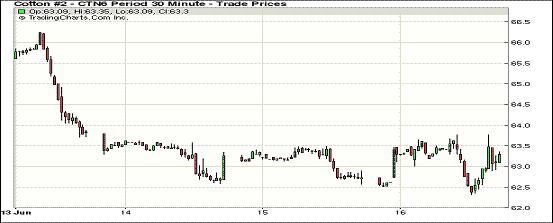 周四紐約期棉反彈,近月合約結(jié)束連續(xù)6天的跌勢(shì)再次上漲;1607月合約63.30美分/磅,漲70點(diǎn);1612月合約64.93美分/磅,漲131點(diǎn)。當(dāng)日早間期棉走勢(shì)平穩(wěn),USDA出口報(bào)告發(fā)布時(shí)賣盤(pán)增加,合約價(jià)走低后觸底反彈。6月3日至9日一周,美棉簽約下滑,本年度和下年度陸地棉簽約總和118700包,較前一周的247400減少,本年度陸地棉簽約量創(chuàng)近六周來(lái)最低。本年度陸地棉簽約總量達(dá)到USDA預(yù)測(cè)的103%。