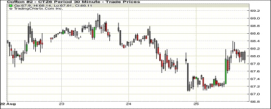 8月12日至18日一周美國本年度陸地棉簽約62573噸,裝運(yùn)43885噸,良好的出口使紐約期棉止跌。1612合約68.04美分/磅,漲25點(diǎn);1703合約68.31美分/磅,跌1點(diǎn)。周四主力合約開盤后走低,但盤中有所回升,最高漲到68.40美分/磅,之后合約價(jià)一直在133點(diǎn)震蕩區(qū)間頂部波動(dòng)。至8月18日,美國2016/17年度總簽約已達(dá)到預(yù)計(jì)出口量的37%,去年同期為30%;2017/18年度簽約33.28萬包。