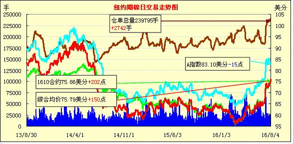 周四,下年度美棉簽約出口平穩(wěn),天氣因素繼續(xù)影響市場(chǎng),紐約期棉大漲,1612合約創(chuàng)2014年6月以來最高價(jià)位。1612合約75.83美分/磅,漲154點(diǎn);1703合約75.90美分/磅,漲138點(diǎn)。當(dāng)日12月合約開盤后小幅震蕩,美棉出口公布后強(qiáng)勁上漲并保持漲勢(shì),最終合約創(chuàng)近兩年新高。目前主產(chǎn)棉區(qū)德州天氣保持干燥,市場(chǎng)對(duì)未來棉花產(chǎn)量擔(dān)憂,同時(shí)中國(guó)需求改善利多棉市。2015/16年度最后一周美棉本年度和下年度簽約合計(jì)超過5萬噸。