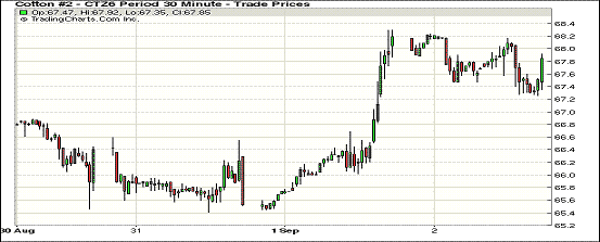 2日,紐約期棉市場(chǎng)小幅下跌,主要受預(yù)期熱帶風(fēng)暴對(duì)棉花產(chǎn)量影響有限影響,主力12月合約結(jié)算價(jià)67.79美分,跌39點(diǎn),1703月合約68.11美分,跌8點(diǎn)。當(dāng)日12月合約上半場(chǎng)交易主要在67.5-68美分之間波動(dòng),盤(pán)中短暫停留在68美分以尋求支撐,交易后半段缺乏支撐跌落至67.5美分以下,尾段稍有拉升略高于67.5支撐位收盤(pán)。受熱帶風(fēng)暴來(lái)襲和美棉出口利好影響,前幾日紐約期棉市場(chǎng)出現(xiàn)大幅上漲,但從風(fēng)暴預(yù)期看,對(duì)棉花的影響或有限,缺乏天氣炒作題材市場(chǎng)回落。