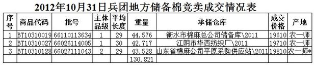 10月31日兵團(tuán)棉花競(jìng)賣成交結(jié)果