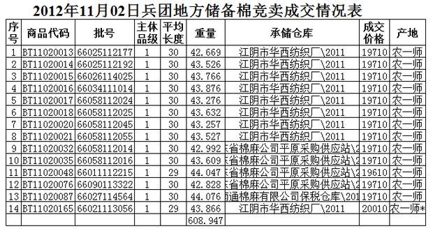 11月2日兵團(tuán)棉花競賣成交結(jié)果