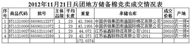錦橋紡織網(wǎng)—資訊頻道> 棉花信息> 拋儲>正文 11月21日兵團棉花競賣成交結果