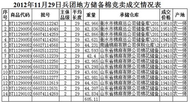 11月29日兵團(tuán)棉花競(jìng)賣成交結(jié)果