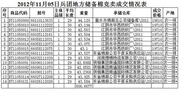 11月5日兵團(tuán)棉花競(jìng)賣成交結(jié)果