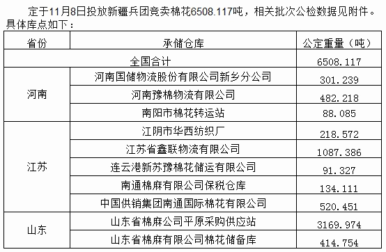 11月8日兵團(tuán)棉花競賣預(yù)告:計劃投放6508噸