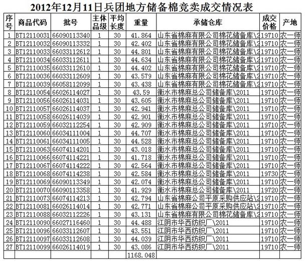 12月11日兵團(tuán)棉花競(jìng)賣成交結(jié)果