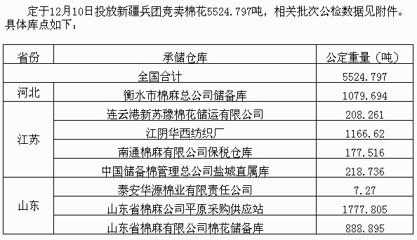 12月10日兵團(tuán)棉花競(jìng)賣預(yù)告:計(jì)劃投放5525噸