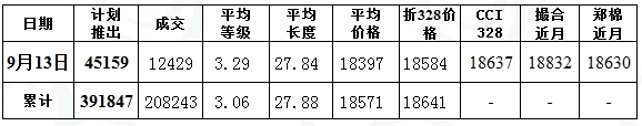 儲備棉投放日評(9.13):品級長度雙降 成交比例續(xù)弱