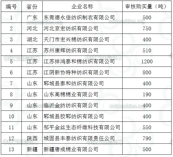 2012年儲(chǔ)備棉投放競(jìng)買(mǎi)紡織企業(yè)名單和競(jìng)買(mǎi)數(shù)量(第十八批)