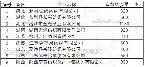 2012年儲(chǔ)備棉投放競買紡織企業(yè)名單和競買數(shù)量(第十九批)