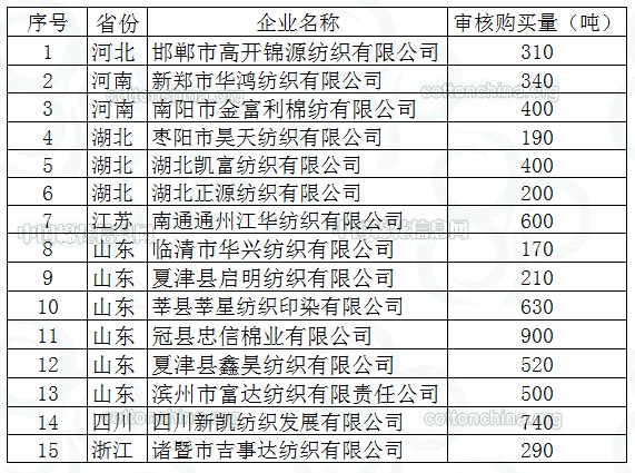 2012年儲備棉投放競買紡織企業(yè)名單和競買數(shù)量(第二十一批)