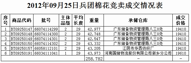 9月25日兵團(tuán)棉花競(jìng)賣成交結(jié)果