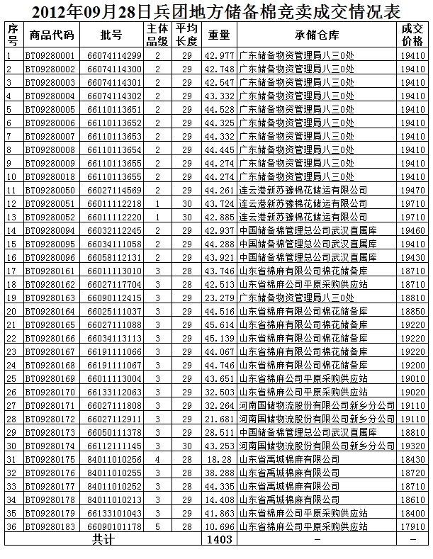 錦橋紡織網(wǎng)—資訊頻道> 棉花信息> 拋儲>正文 9月28日兵團棉花競賣成交結(jié)果