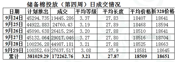 儲備棉投放周評:累計成交比例45.21% 平均等級3.21