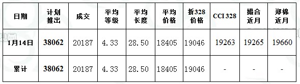 儲備棉投放日評(1.14):首日成交53% 資源等級偏低