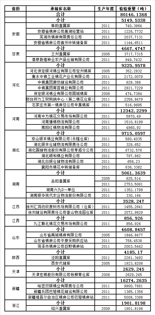 錦橋紡織網(wǎng)—資訊頻道> 棉花信息> 拋儲>正文 1月28日儲備棉計(jì)劃投放80146噸 ——投放預(yù)告
