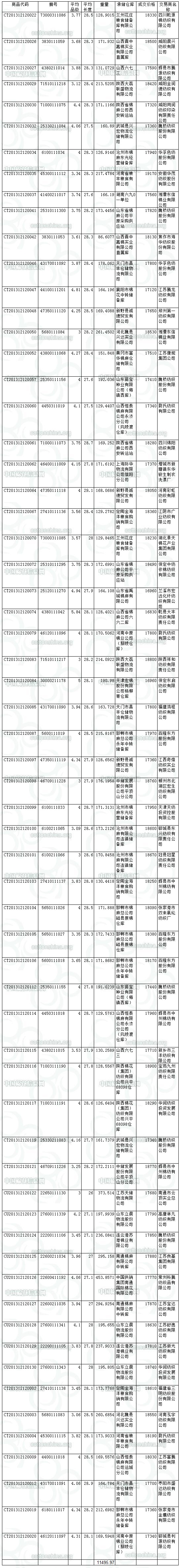 12月12日儲(chǔ)備棉投放成交結(jié)果