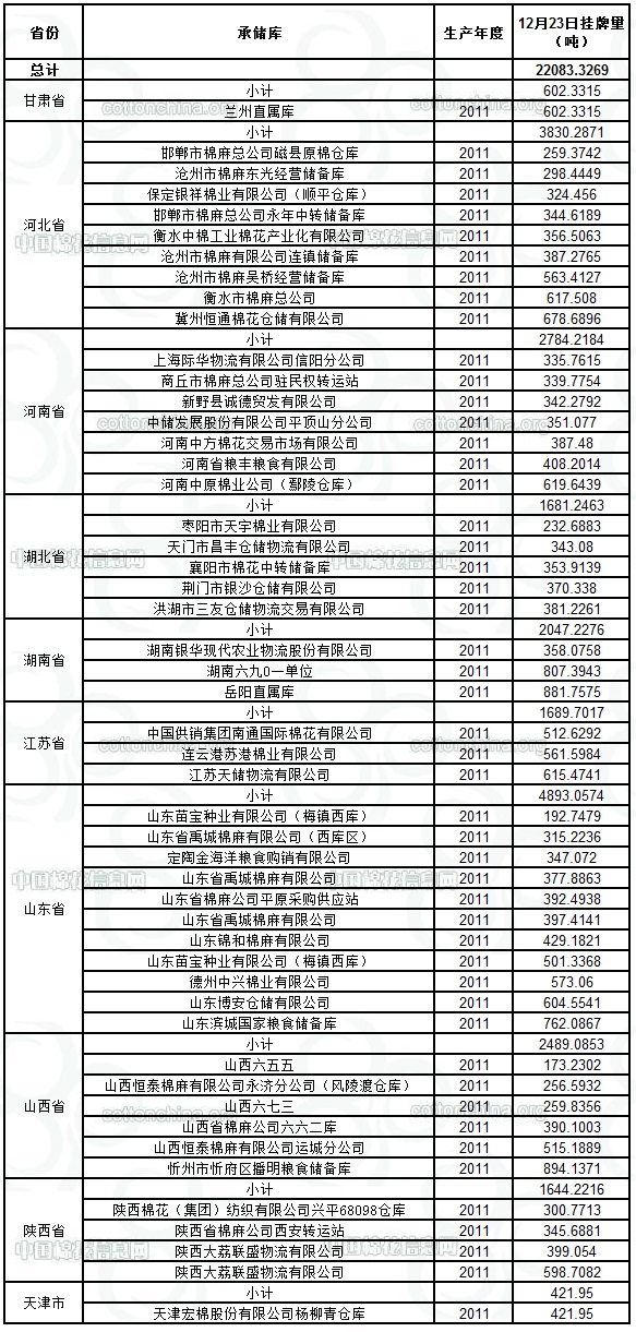 12月23日儲(chǔ)備棉計(jì)劃投放22083噸