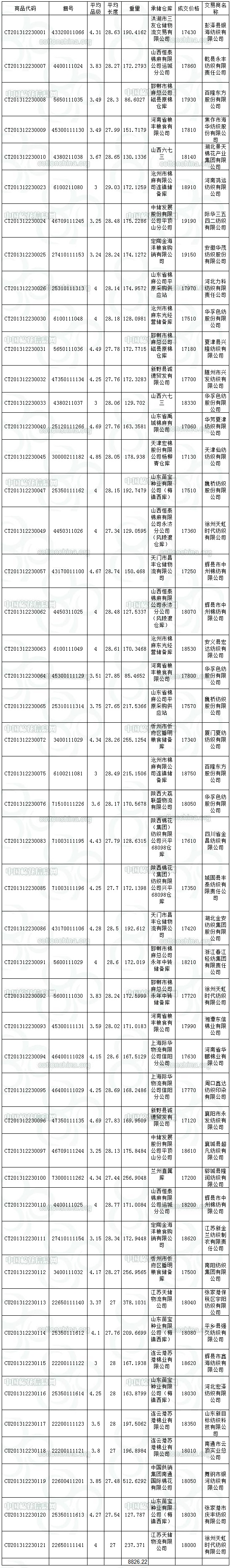 12月23日儲備棉投放成交結(jié)果