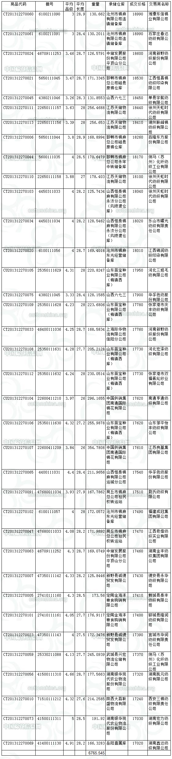 12月27日儲(chǔ)備棉投放成交結(jié)果