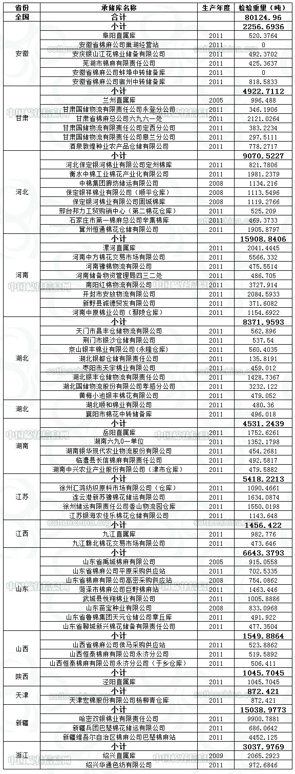 定于2月19日出庫銷售儲備棉80124.9600噸,相關(guān)批次公檢數(shù)據(jù)見附件。具體庫點如下: