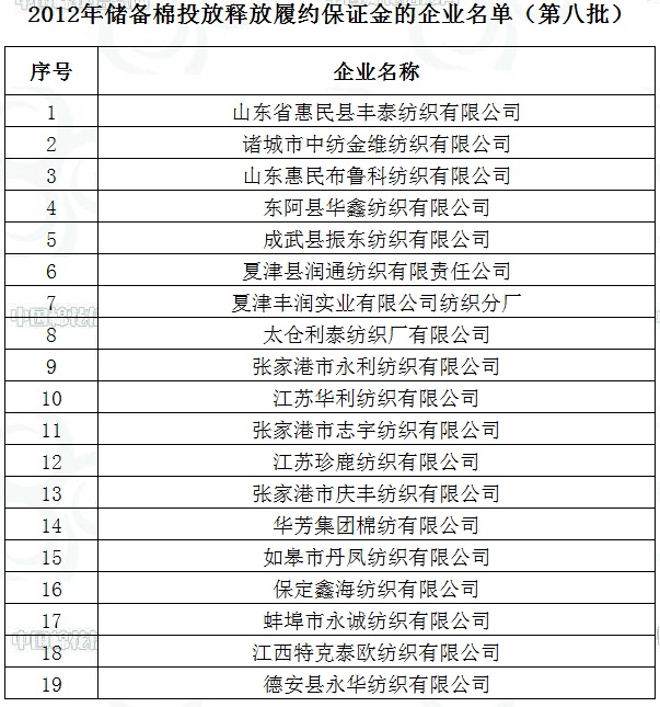 2012年儲(chǔ)備棉投放釋放履約保證金的企業(yè)名單(第八批)