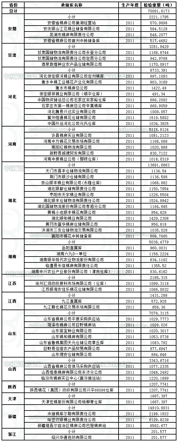 各紡織企業(yè): 定于3月26日出庫銷售儲備棉70091.6173噸,相關(guān)批次公檢數(shù)據(jù)見附件。具體庫點如下: