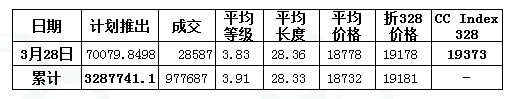 儲備棉投放日評(3.28):成交比例上升 競拍均價(jià)回落