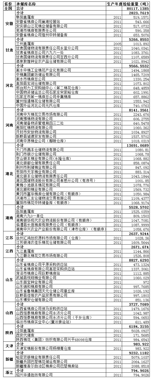 錦橋紡織網(wǎng)—資訊頻道> 棉花信息> 拋儲>正文 3月5日儲備棉計劃投放80117噸 ——投放預(yù)告