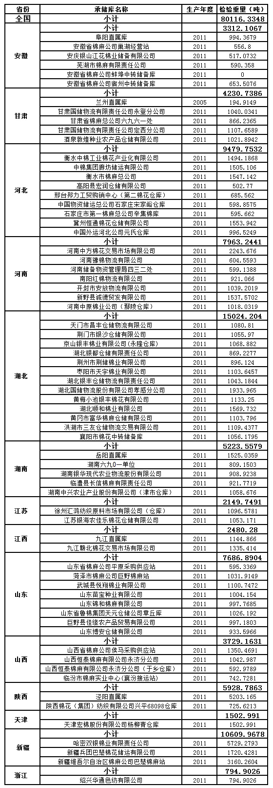 中國儲備棉管理總公司定于3月6日出庫銷售儲備棉80116.3348噸,相關(guān)批次公檢數(shù)據(jù)見附件。具體庫點如下: