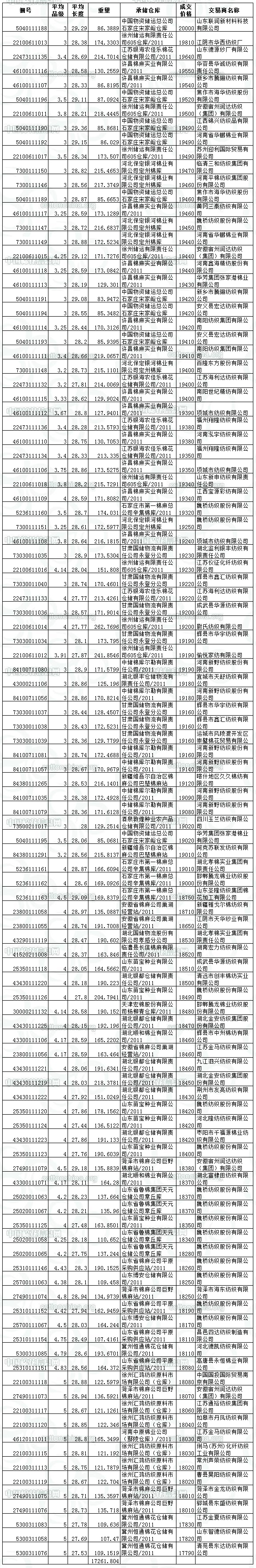 4月1日儲(chǔ)備棉投放成交結(jié)果
