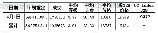 儲備棉投放日評(4.1):投放量競買比例雙降 均價微漲
