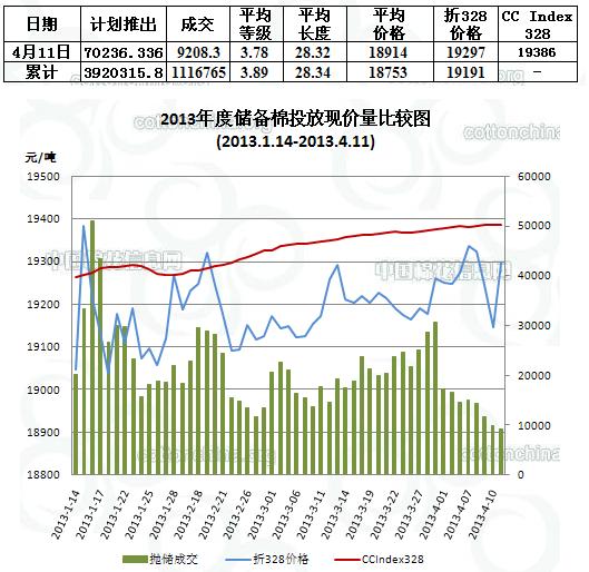 儲備棉投放日評(4.11):均價反彈 2013年總成交量111.7萬噸