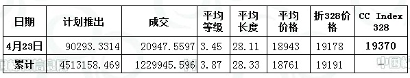 儲備棉投放日評(4.23):成交比例升高 競拍企業(yè)增加