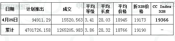 儲(chǔ)備棉投放日評(píng)(4.25):成交比例降低 均價(jià)上升