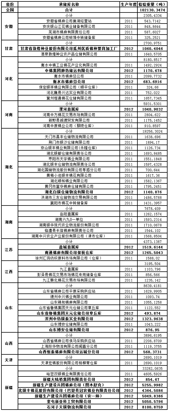 中國儲備棉管理總公司定于4月27日出庫銷售儲備棉102130.3474噸,相關(guān)批次公檢數(shù)據(jù)見附件。具體庫點(diǎn)如下:
