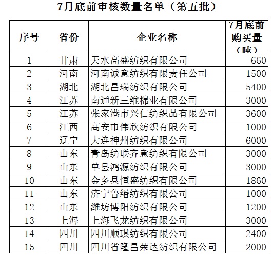2013年儲(chǔ)備棉投放7月底前審核競(jìng)買紡織企業(yè)名單(第五批)
