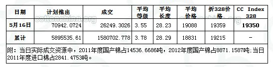 儲備棉投放日評(5.16):投放庫點減少 成交比例提升