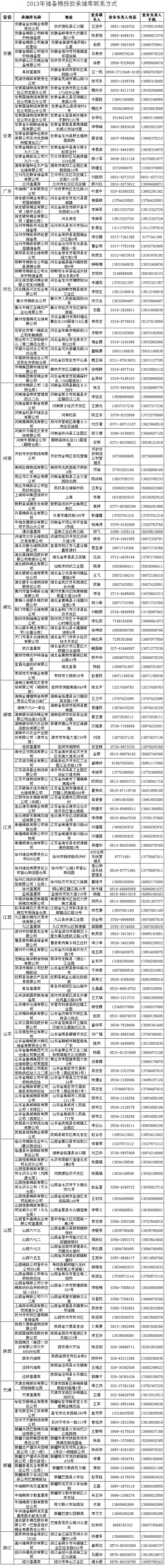 2013年儲(chǔ)備棉投放承儲(chǔ)庫(kù)聯(lián)系方式
