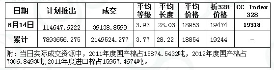 儲備棉投放日評(6.14):進(jìn)口棉成交積極帶動整體成交率續(xù)升